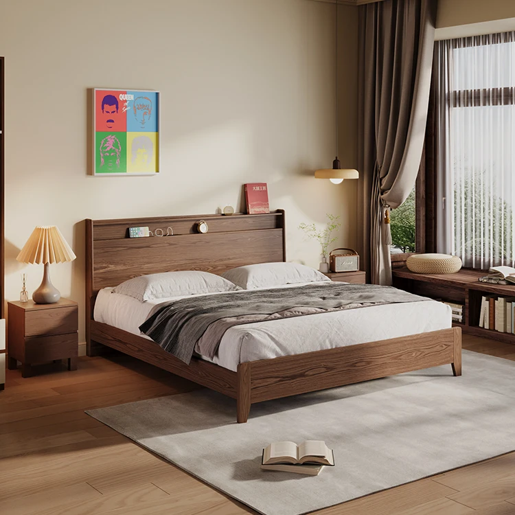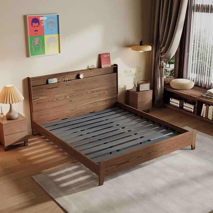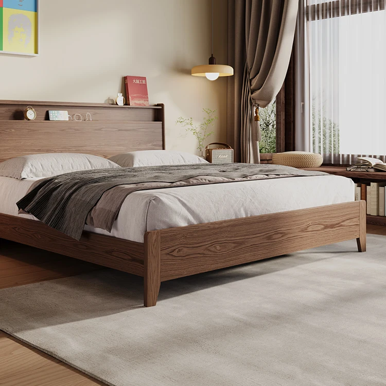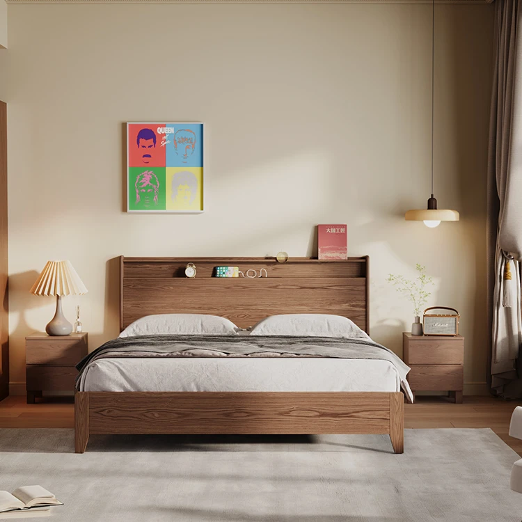 Bedding Set Hotel Bed Frame Kids’ Beds Bedroom Sets Modern king Size Walnut Wood Panel Furnitures Solid Wooden Bed Furniture