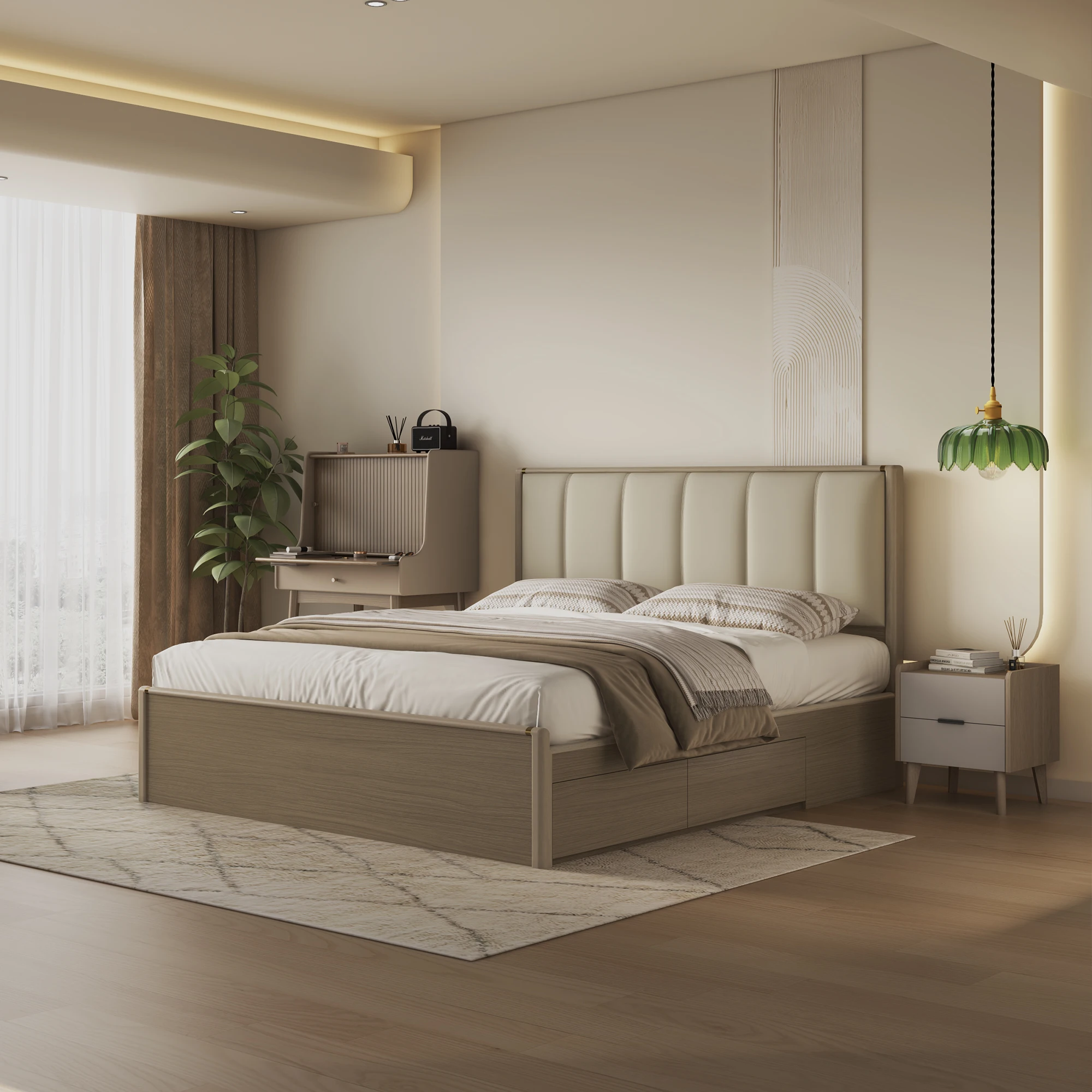 5.Customizable to meet your space requirements. this Soft Headboard Upholstered Bed can be tailored in a variety of sizes. making it a perfect choice for bedrooms. apartments. and hotels.
