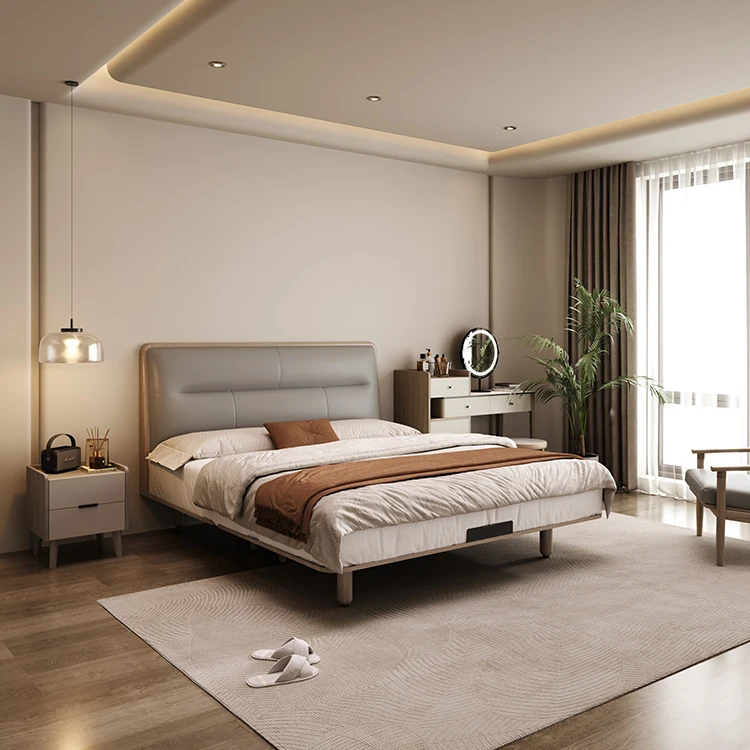 High Grade Modern Double Bed Storage Set Solid Wood King Size Hotel Furniture with Soft Style Leather Bedroom Furniture