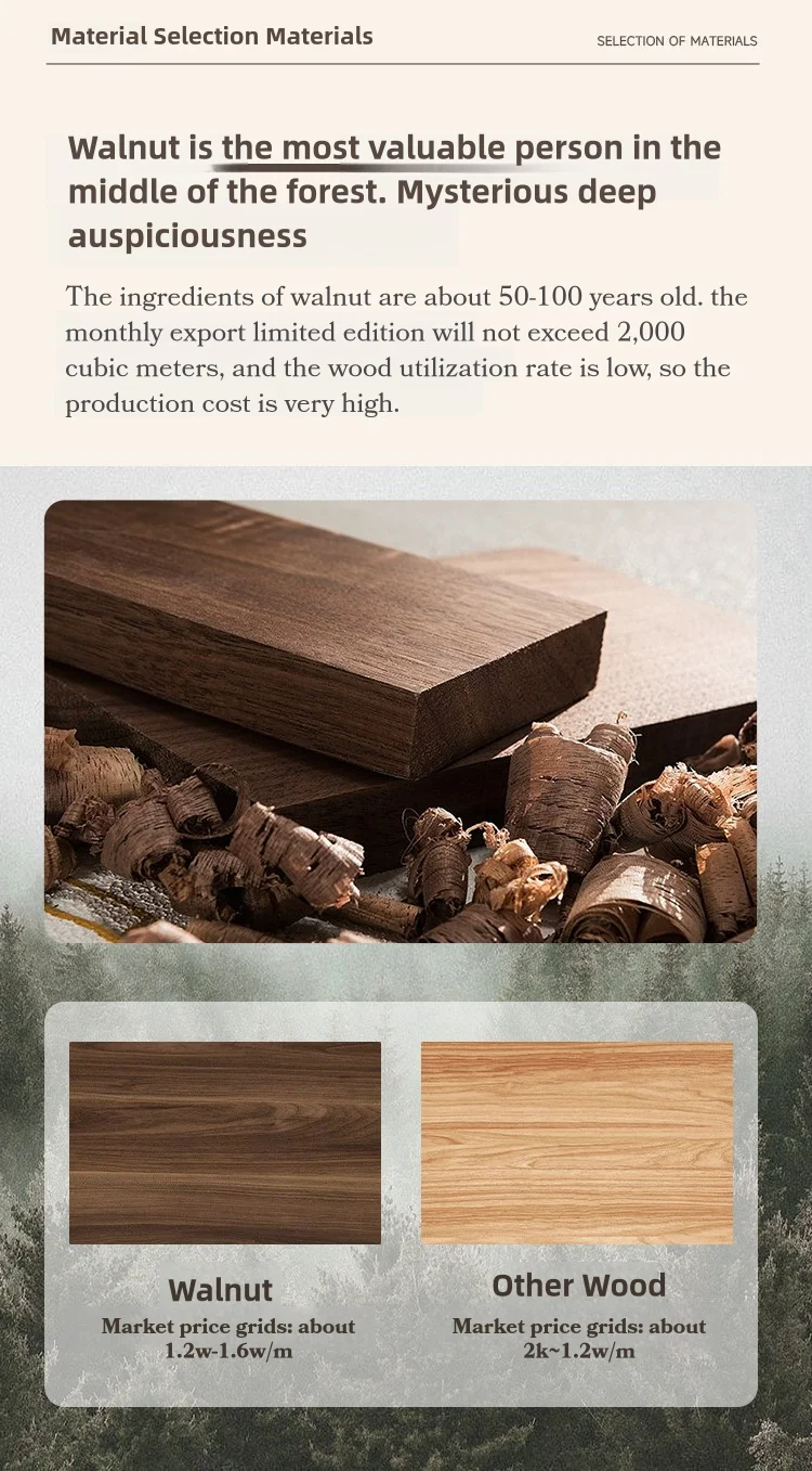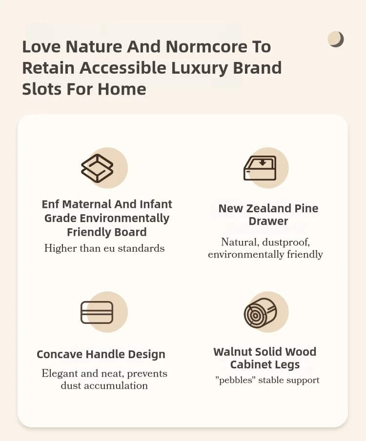 Material | Table Top:12mm Slate. Side of Cabinet : ENF Board. Front of Drawers: E0 Grade Board and Deodorizing Paint Panel Feet:Walnut Solid Wood |