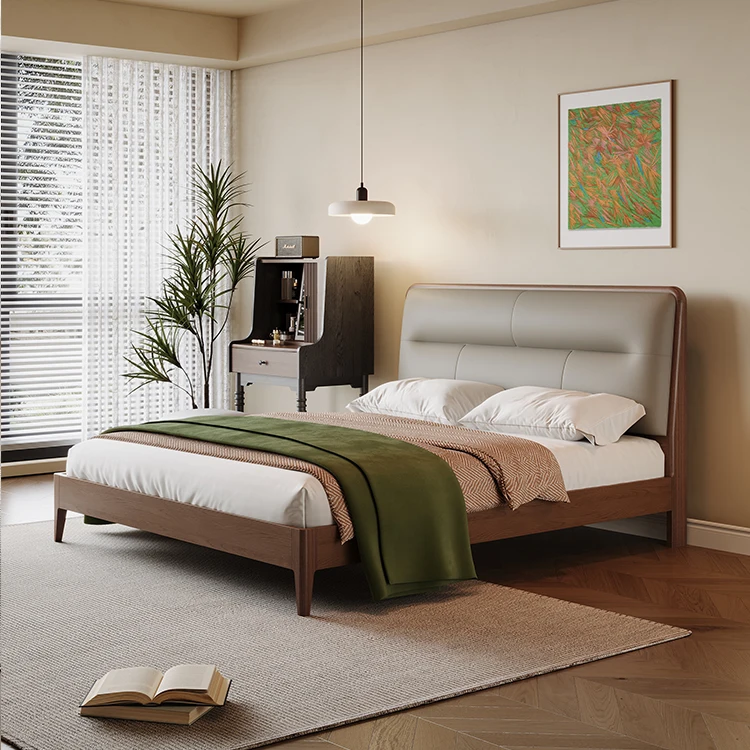 Hot Selling High Quality Modern Bedroom Furniture Queen Bed High-End Simple Wedding Bed King Size Soft Wooden Frame Wholesale