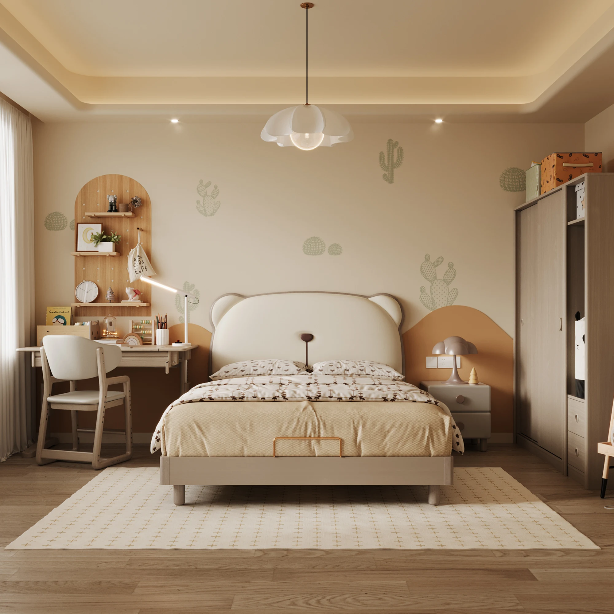 Luxury Modern Bedroom Furniture Set Kids’ Beds Children Bunk Bed French Contemporary Upholstered Platform Oak Children’s Bed