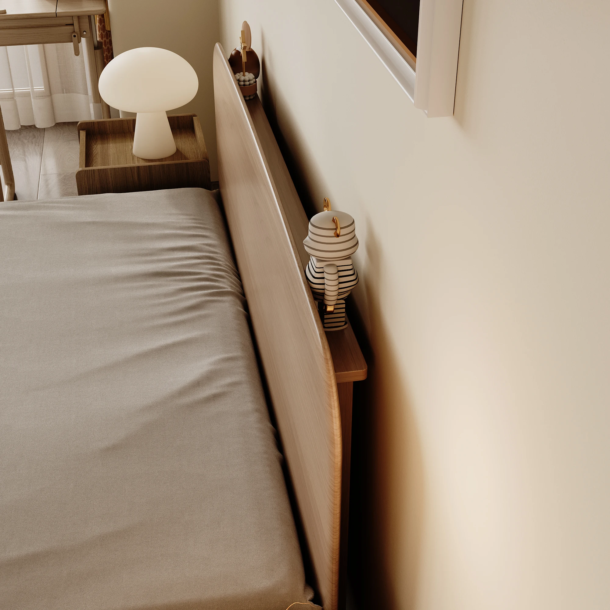 5.The bed's headboard and sides have beautiful features like tufted and curved designs. making the space look stylish while maintaining a cozy environment for children's growth and development.