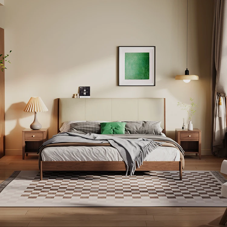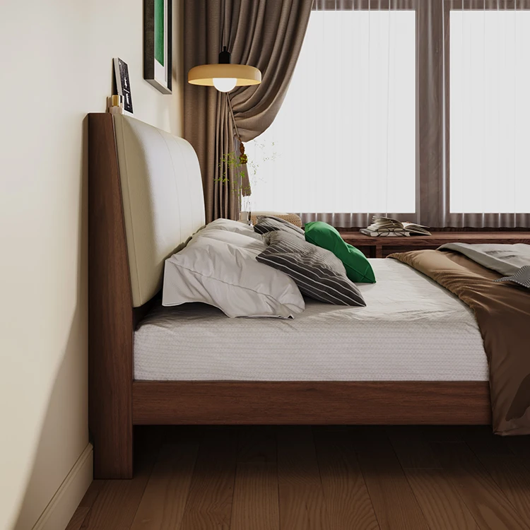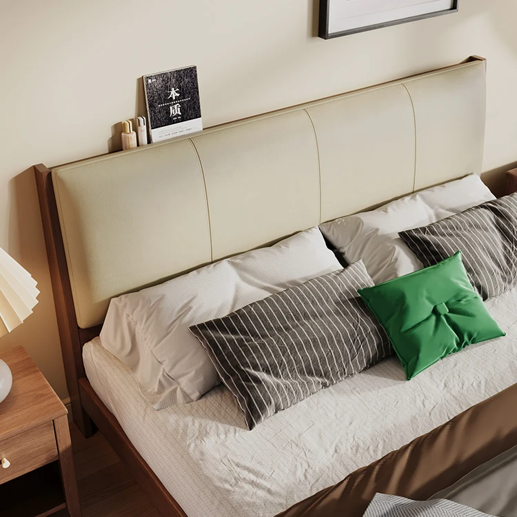 Modern Design Top Grain Leather King Size Double Bed Frame Soft Upholstered Wooden Headboard Bedroom Furniture