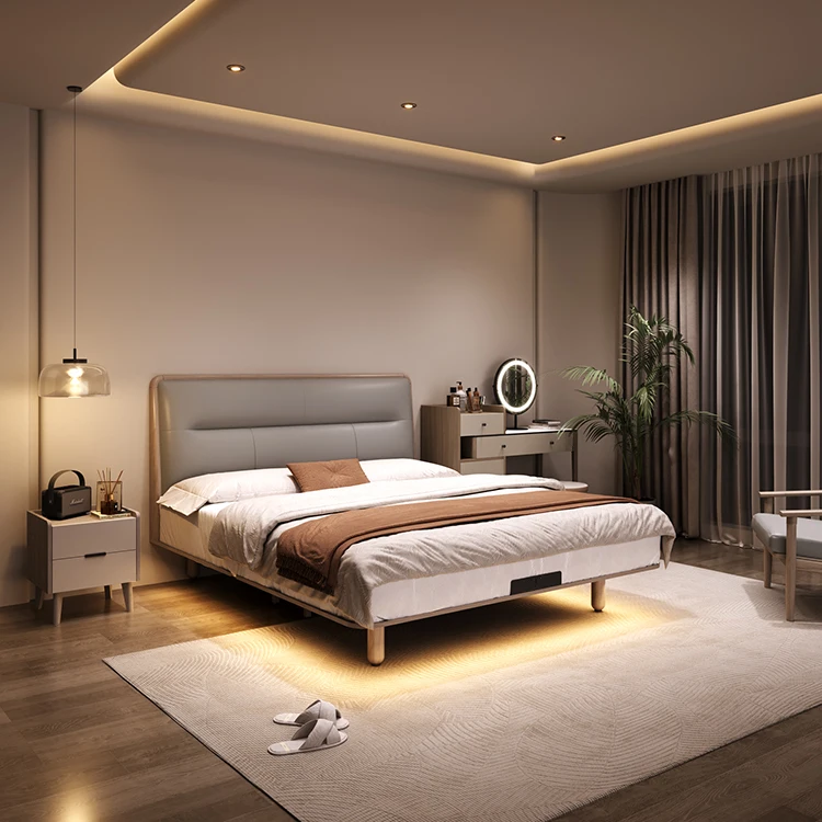 2.Soft and comfortable genuine leather upholstery: The genuine leather upholstery on the PcZ-001 bed ensures that you can experience premium comfort and relaxation. Enjoy the natural texture and softness of the leather. while its thermal insulation property maintains a comfortable sleeping environment.
