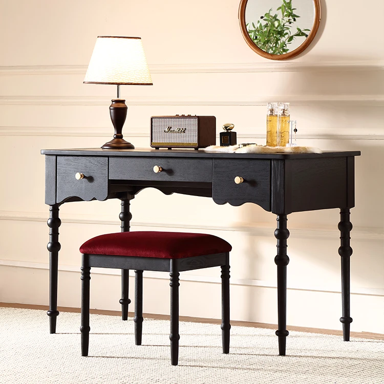 Modern European Bedroom Furniture Makeup Wood Table Mirror Solid Wood Dressing Table