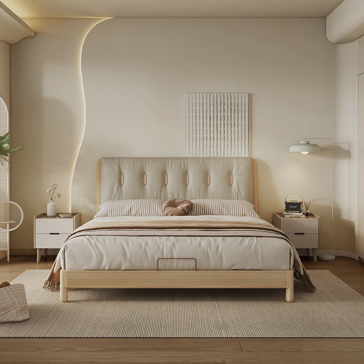 Modern Luxury Cowhide High Bed Screen White Leather Queen Bed Frame with Soft Style for Home Use Bedroom Accessory