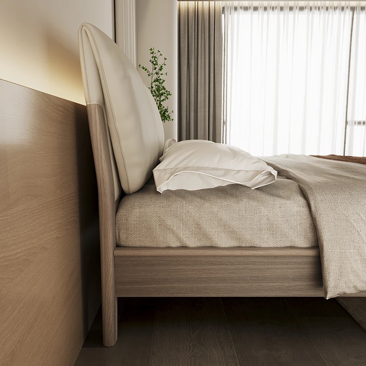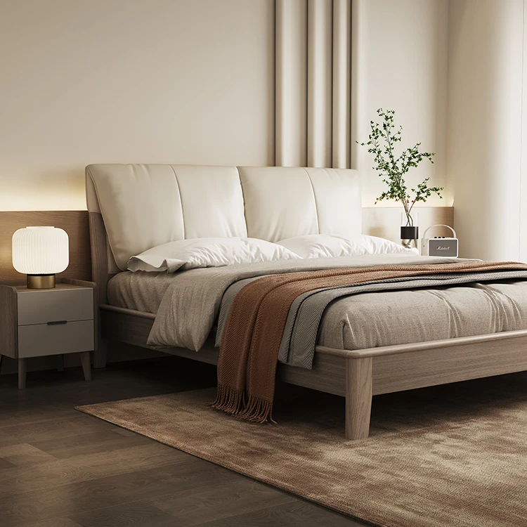 Modern Nordic Wedding Bed Genuine Leather Double Bed with Solid Wood Style Soft Style Bed